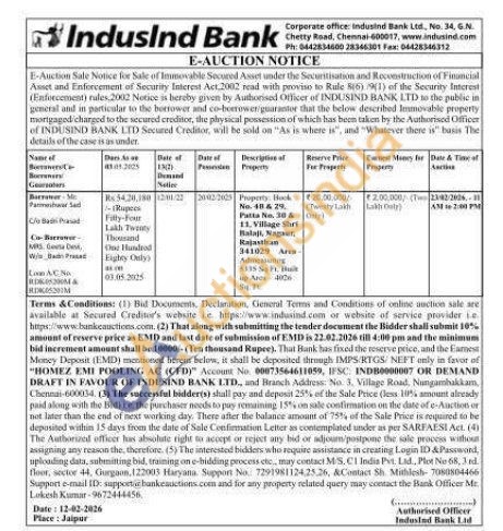 Property: Bock No.48 & 29 Patta No. 30 & 11. Village Shri Balaji, Nagaur, Rajasthan 341029 Arta -Admeasuring 5335 Sq Ft. Buit up Arcs 4026 Sq 71