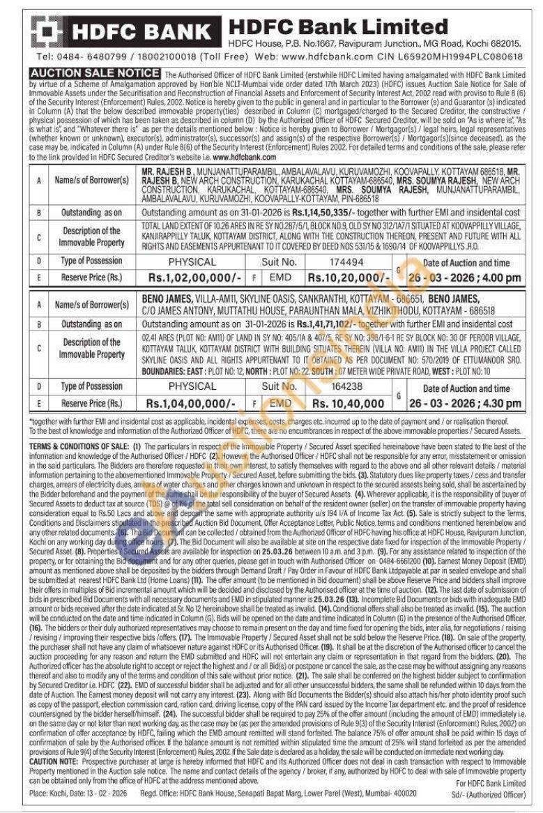 TOTAL LAND EXTENT OF 10.26 ARES IN RE SY NO.287/5/1, BLOCK NO.9, OLD SY NO 312/1A7/1 SITUATED AT KOOVAPPILLY VILLAGE, KANJIRAPPILLY TALUK, KOTTAYAM DISTRICT, ALONG WITH THE CONSTRUCTION THEREON, PRESENT AND FUTURE WITH ALL RIGHTS AND EASEMENTS APPURTENANT TO IT COVERED BY DEED NOS 531/15 & 1690/14 OF KOOVAPPILLYS RO