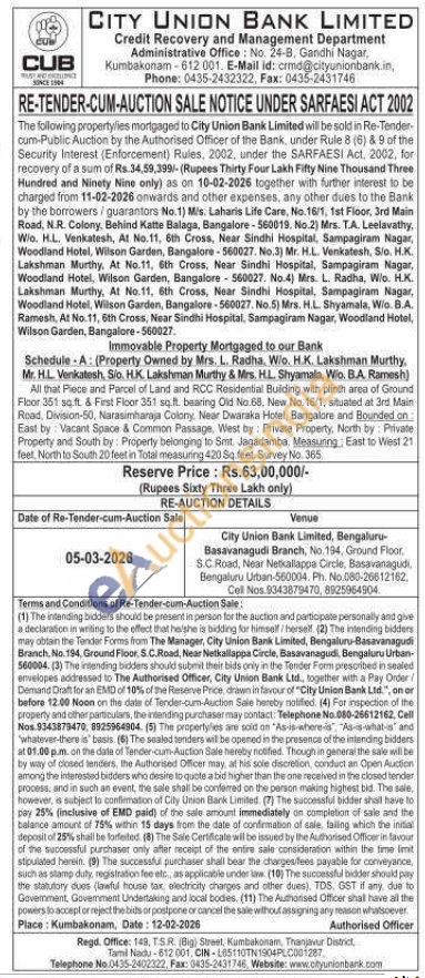 All that Piece and Parcel of Land and RCC Residential Buliding with plinth area of Ground Floor 351 sq ft & First Floor 351 sq.ft. bearing Old No 68, New No. 16/1, situated at 3rd Main Road, Division-50, Narasimharaja Colony. Near Dwaraka Hotel, Bangalore and Bounded on East by: Vacant Space & Common Passage. West by: Private Property, North by: Private Property and South by Property belonging to Smt. Jagadamba Measunng, East to West 21 feet, North to South 20 feet in Total measuring 420 Sq feet. Survey No. 365