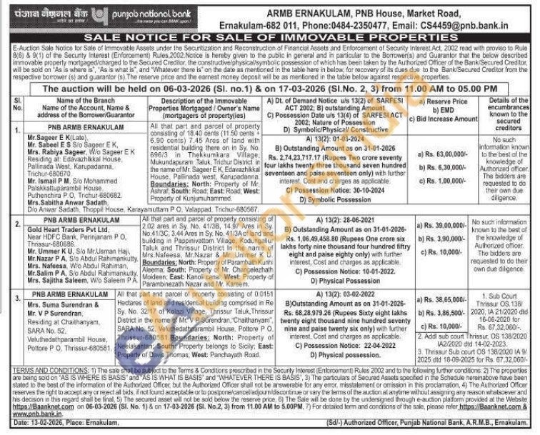 All that part and parcel of property consisting of 0.0151 Hectares of land and residential building comprised in Re No. 32/17 of Kolazi Village. Thrissur Taluk, Thrissur District in the name of Mr. VP Surendran, "Chaithanyam", SARA No. 52, Velushedathparambil House. Pottore PO. Thrissur-680581 Boundaries, North: Property of Neelakantan, South: Property belongs to Sicily, East: Property of Davis Thomas, West: Panchayath Road,