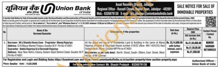 All the piece and parcel of Residential Land & Building in the name of Manoj Rajoriya situated at Municipal House number 418/22 (New-MH 1424/22) Near Godam Basti, Morar, Gwalior MP Pin no 474001Boundaries as per sale deed: North-Street, South-Others, East-Street, West-House of Mr Lokman