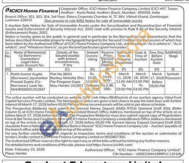 Plot No.38/01 Bankey Mohalla Shiv Par Pargana Gopa Mau Hardoi-241001