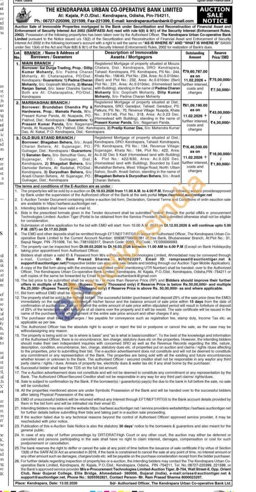 Registered Mortgage of property situated at Dist.: Kendrapara, DRO: Kendrapara, Tahasil: Kendrapara, PS: Kendrapara, PS No.: 134, Revenue Village: Sujanagar, Khata No.: 194, Plot No.: 422, Area: Ac.0.02 Dec 5 Kadi (Homestead land with Building) & Plot No.: 422/630, Area: Ac.0.020 Dec. (Homestead land with Building), Bounded by East: Muralidhar Behera, West: Village Road, North: Uttam Sahoo, South: Anadi Sahoo, standing in the name of Bhagaban Behera & Duryodhan Behera, S/o.: Anadi Charan Behera.