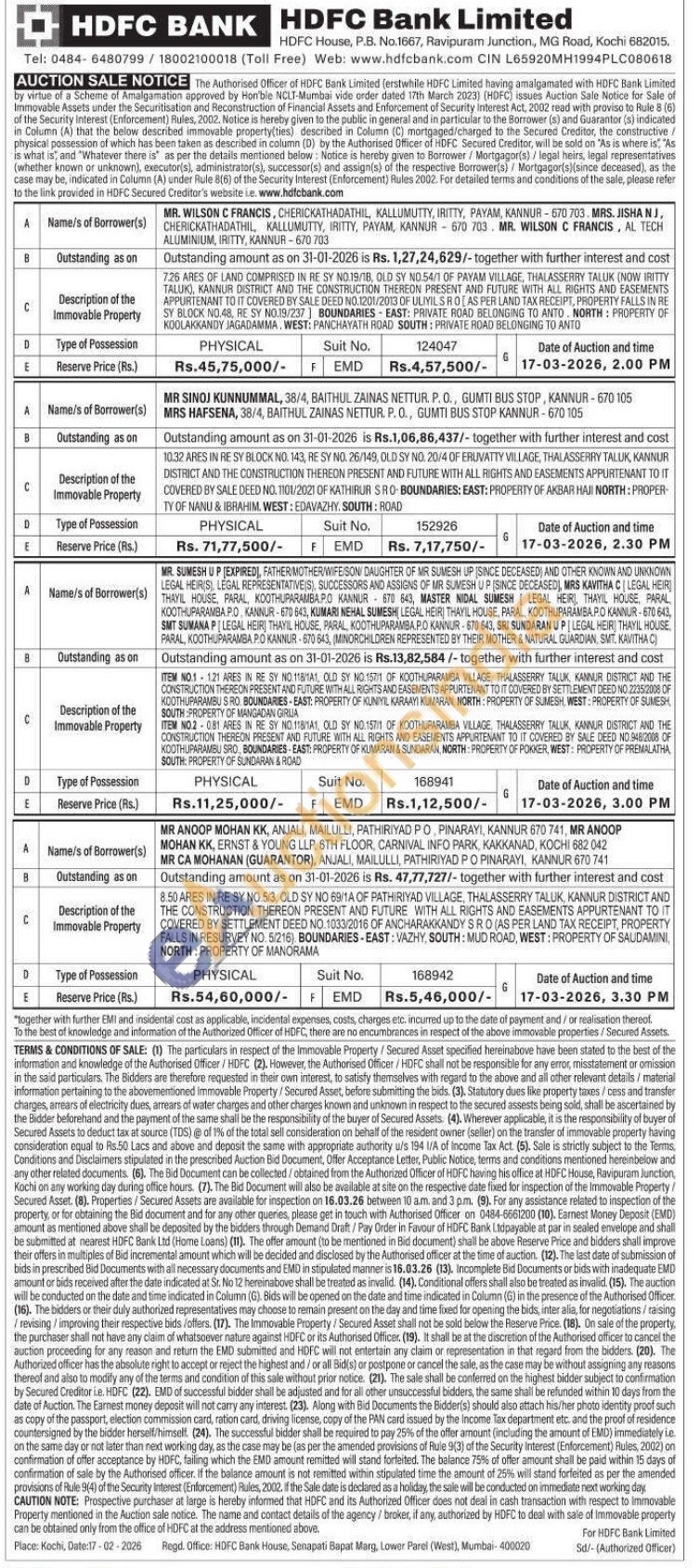 ITEM NO1 121 ARES IN RE SY NO 118/1A1, OLD SY NO:1571 OF KOOTHUPARAMBA VILLAGE, THALASSERRY TALUK, KANNUR DISTRICT AND THE CONSTRUCTION THEREON PRESENT AND FUTURE WITH ALL RIGHTS AND EASEMENTS APPURTENANT TO IT COVERED BY SETTLEMENT DEED NO 2235/2008 OF KOOTHUPARAMBU SRO BOUNDARIES-EAST PROPERTY OF KUNIYIL KARAAYI KUMARAN, NORTH PROPERTY OF SUMESH, WEST: PROPERTY OF SUMESH SOUTH PROPERTY OF MANGADAN GIRLUA 0 ITEM NO2-081 ARES IN RE SY NO.1181A1, OLD SY NO.15711 OF KOOTHUPARAMBA VILLAGE, THALASSERRY TALUK, KANNUR DISTRICT AND THE CONSTRUCTION THEREON PRESENT AND FUTURE WITH ALL RIGHTS AND EASEMENTS APPURTENANT TO IT COVERED BY SALE DEED NO 948/2006 OF KOOTHUIPARAMBU SRO, BOUNDARIES EAST: PROPERTY OF KUMARAN & SUNDARAN, NORTH PROPERTY OF POKKER, WEST PROPERTY OF PREMALATHA SOUTH PROPERTY OF SUNDARAN & ROAD