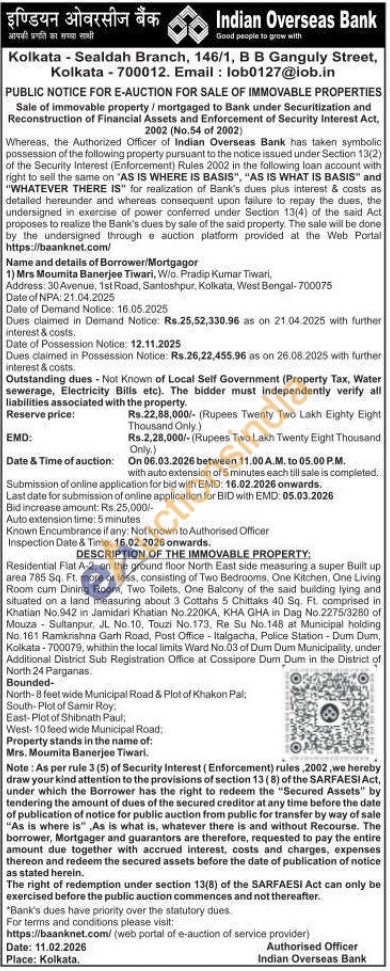 Property stands in the name of: Mrs. Moumita Banerjee Tiwari