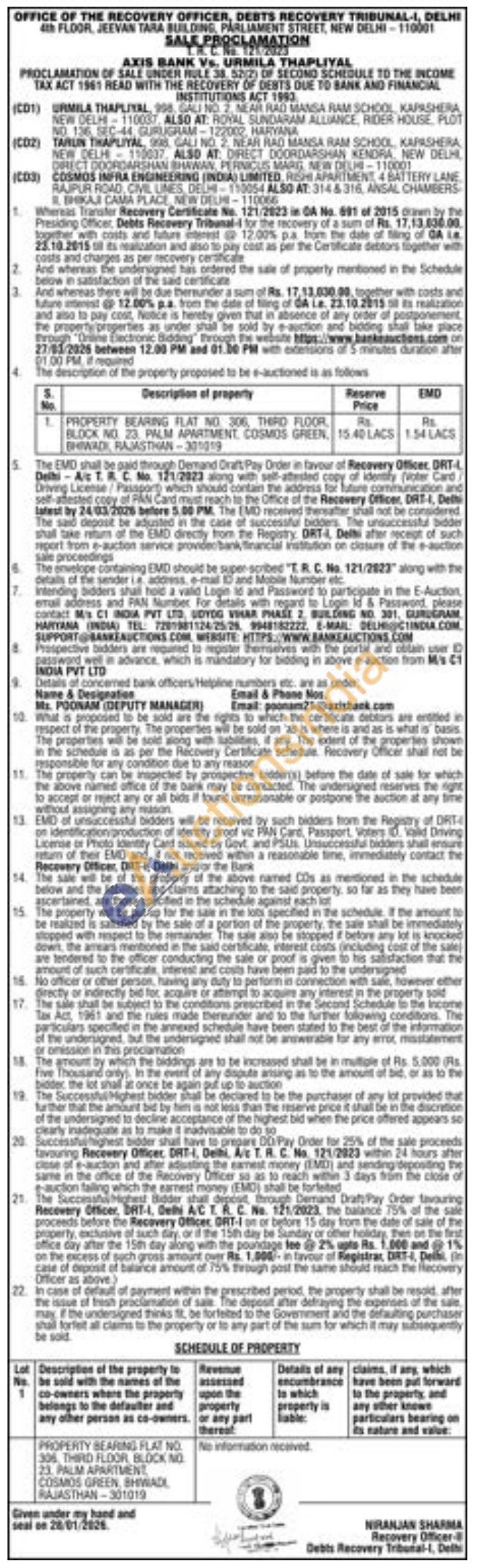 PROPERTY BEARING FLAT NO 306, THIRD FLOOR BLOCK NO 23. PALM APARTMENT COSMOS GREEN, BHIWADI, RAJASTHAN-3010ng