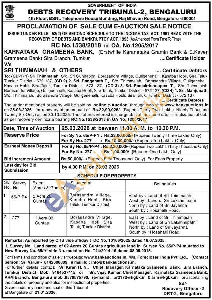 Extent (Acres & Guntas) : 1 Acre 03 Guntas