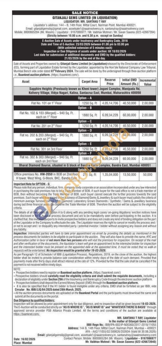 Mobile: 8800865284 (Mr. Wasim)/Liquidator-9167086977 Mr. Vaibhav Mohnot/Mr. Savan Saxena (022-425673940)