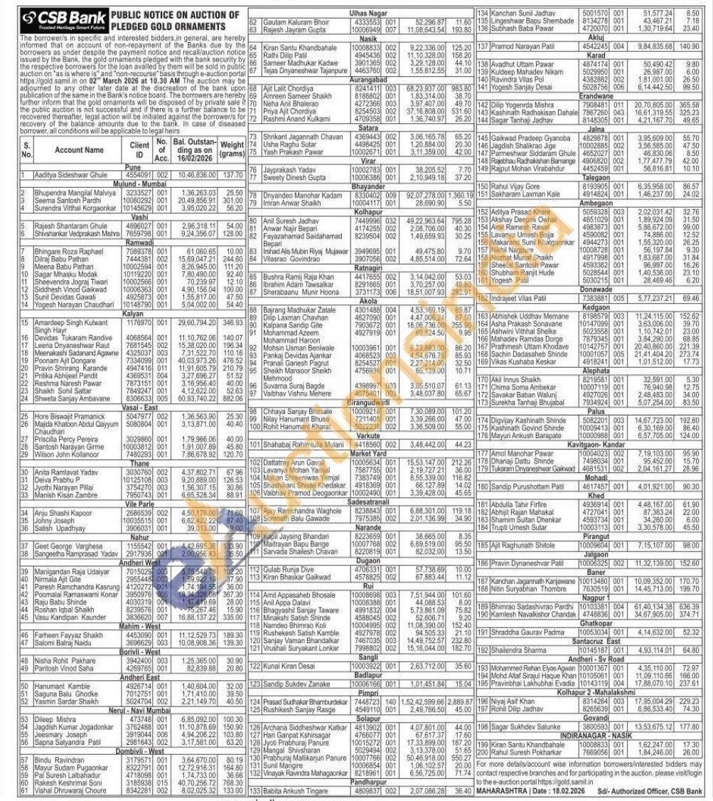 CSB Bank Gold Auctions Auction in Mumbai
