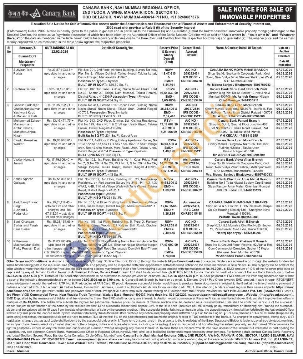 Fiat No.C3/102, 1st Floor, Building No. C3, Nandadeep Residency, on Plot bearing Survey No 3/18, 4/1, 4/2, 4/3, 4/4A2, 4/48, 81/1 of Village Wadawali Tarfe Waredi, Taluka Karjat, District Raigad-410201 Possession Type:Symbolic, BUILT UP IN SQ FT:-261 Sq. Ft.