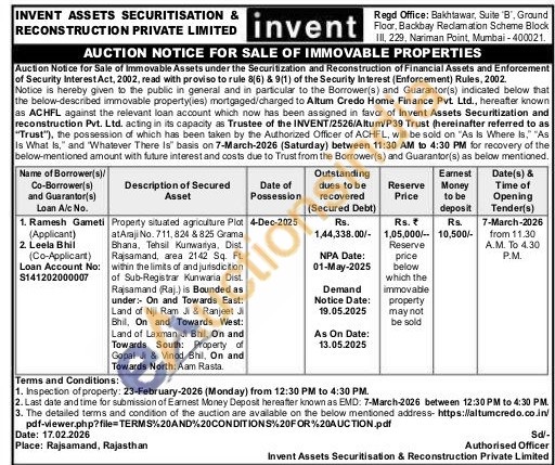 Property situated agriculture Plat atAraji No. 711, 824 & 825 Grama Bhana, Tehsil Kunwariya, Dist. Rajsamand, area 2142 Sq. Ft. within the limits of and jurisdicition of Sub-Registrar Kunwaria Dist. Rajsamand (Raj.) is Bounded as under: On and Towards East: Land of Nji Ram Ji & Ranjeet ال Bhil, On and Towards West: Land of Laxman Ji Bhil, On and Towards South: Property of Gopal & Vinod Bhil, On and Towards North: Aam Rasta