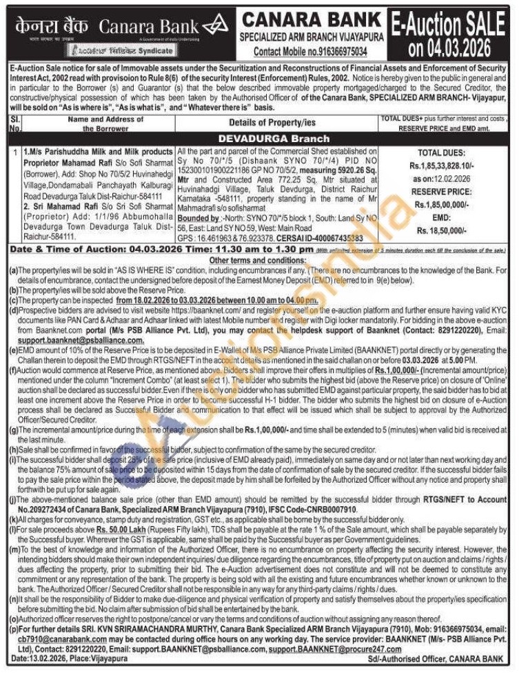 All the part and parcel of the Commercial Shed established on Sy No 70/*/5 (Dishaank SYNO 70/*/4) PID NO 152300101900221186 GP NO 70/5/2, measuring 5920.26 Sq. Mtr and Constructed Area 772.25 Sq. Mtr situated at Huvinahadgi Village, Taluk Devdurga, District Raichur Kamataka -548111, property standing in the name of Mr Mahmadrafi s/o sofisharmat Bounded by:-North: SYNO 70/*/5 block 1, South: Land Sy NO 56, East: Land SY NO 59, West: Main Road