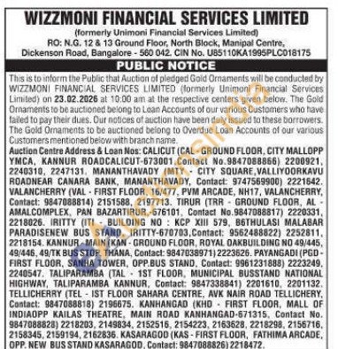 Wizzmoni Financial Services Limited Gold Auctions Auction in Bengaluru