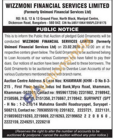 Wizzmoni Financial Services Limited Gold Auctions Auction in Bengaluru