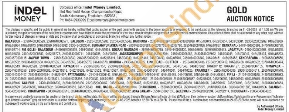 Indel money ltd Gold Auctions Auction in Ernakulam