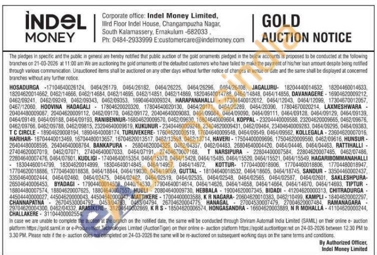 Indel money ltd Gold Auctions Auction in Ernakulam