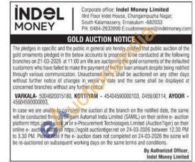 Indel money ltd Gold Auctions Auction in Ernakulam