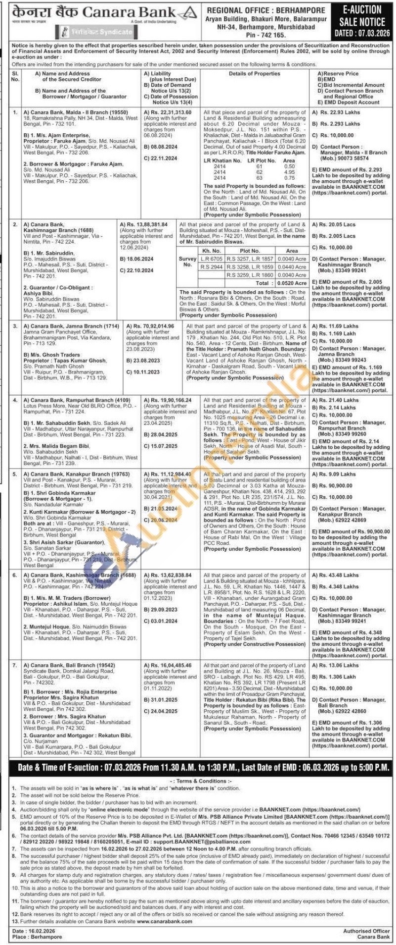 All that piece and parcel of the property of Land & Residential Building admeasuring about 6.20 Decimal under Mouza Moksedpur, J.L. No. 151 within P.S. Khaliachak, Dist-Malda in Jaluabadhal Gram Panchayat, Kaliachak1 Block (Total 6.20 Decimal, Out of said Property 4.00 Decimal as per L.R.R.O.R). Title Holder Faruke Ajam. The said Property is bounded as follows: On the North: Land of Md. Nousad Ali, On the South: Land of Md. Nousad Ali, On the East: Common Passage, On the West: Land of Md. Nousad Ali. (Property under Symbolic Possession