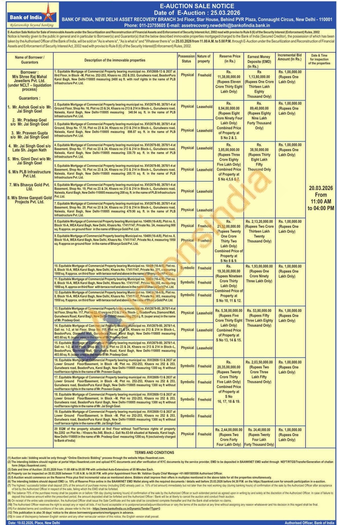 Equitable Mortgage of Commercial Property bearing municipal no. XVI/2608-13 & 2637 at Lower Ground Floor/Basement, in Block M, Plot no. 252-253, Khasra no 252 & 253, Gurudwara road, BeadonPura, Karol Bagh, New Delhi-110005 measuring 1300 sq. ft without roof/terrace rights In the name of Mr. Praveen Gupta.