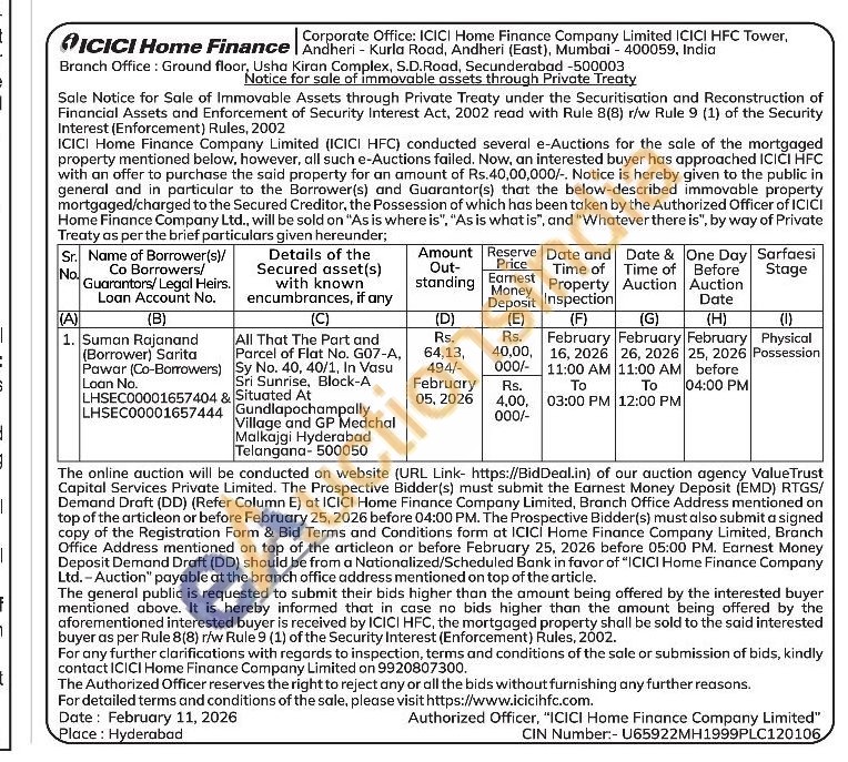 All That The Part and Parcel of Flat No. G07-A, Sy No. 40, 40/1, In Vasu Sri Sunrise, Block-A Village and GP Medchal Malkajgi Hyderabad Telangana-500050 Situated At Gundlapochampally