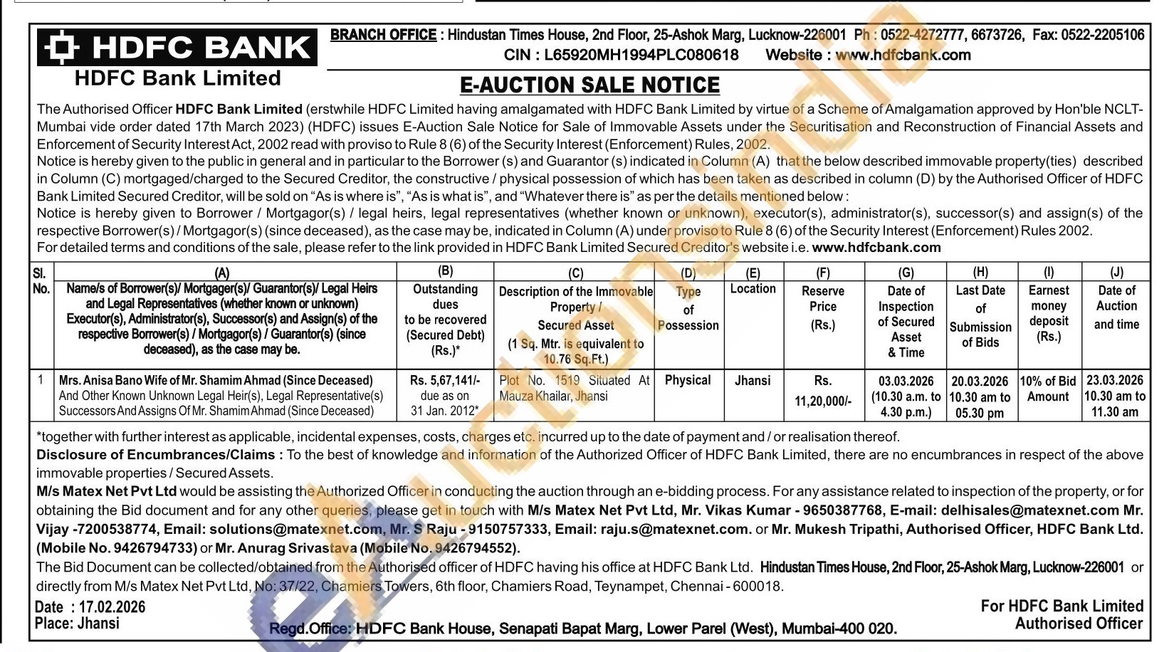 Plot No. 1519 Situated At Mauza Khailar, Jhansi