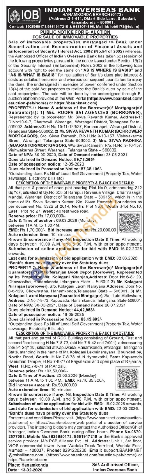All that part & parcel of open plot bearing Plot No.9, admeasuring 312 SqYds, situated at Sy. No.358 of Rampur Revenue Village, Dharmasagar Mandal, Warangal District of Telangana State 506151, which is in the name of Mr. Sivva Revanth Kumar, Sio. Sivva Ramesh. Boundaries as per document No. 5322 of 2014, North: Plot No.8, South Plot No.10, East: Plot No.27, West: 40 feet wide road