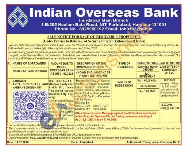 Residential Flat at 2" Floor on Plot No. 1038, Block-C, Sushant Lok-1, Gurgaon (Haryana)-122002, standing in the name of Anita Chaudhary having Built up area of 713 Sq. ft. on Plot area of 180 Sq. Meters Bounded By: East: C-1039 South: C-857 West: C-1037 North: Road