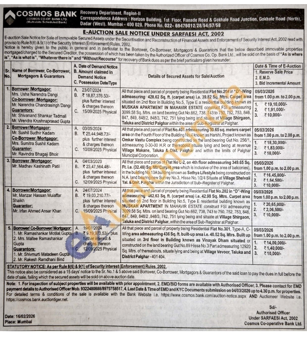 All that piece and parcel of property being Residential Flat No.301, Type-A, C-Wing area admeasuring 436 Sq. ft. built-up area i.e. 40.52 Sq. Mtrs. Built up situated on 3rd floor in Building known as Vinayak Dham situated or constructed on the land bearing Gut No.89 Hissa No.3 Part admeasuring 12920 Sq. Mtrs. of thereabouts, situate lying and being at Village Vevoor, Taluka and District Palghar-401404.