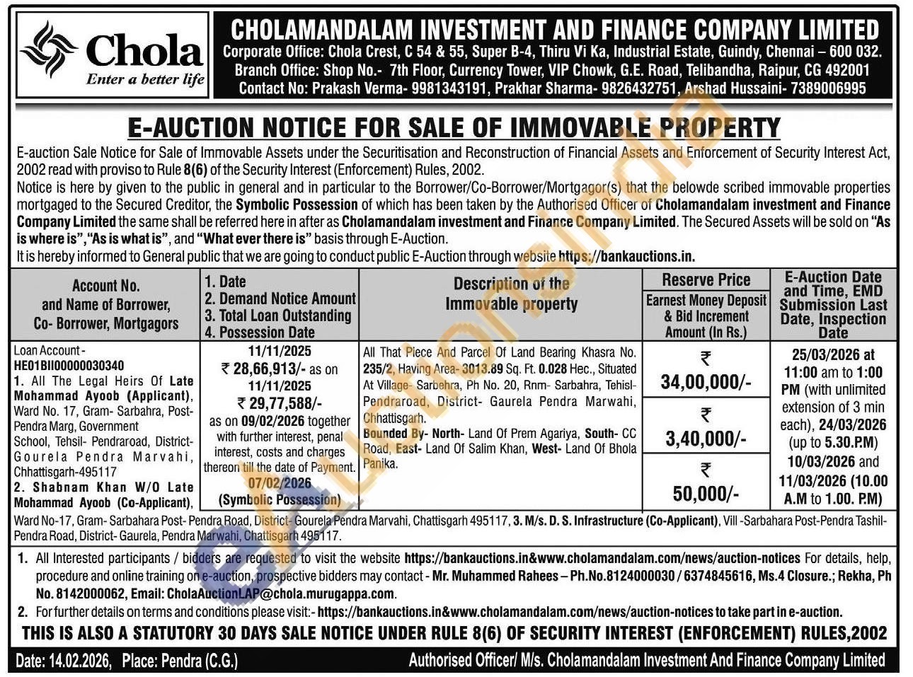 All That Piece And Parcel Of Land Bearing Khasra No. 235/2, Having Area-3013.89 Sq. Ft. 0.028 Hec., Situated At Village Sarbehra, Ph No. 20, Rnm- Sarbahra, Tehisl-Pendraroad, District- Gaurela Pendra Marwahi, Chhattisgarh