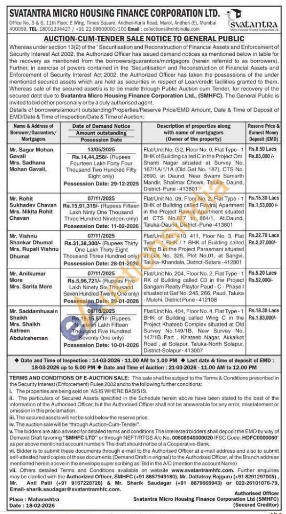 Contact no 8657949180), Mr. Dattatray Rajguru (+91 8291297005), Anil Patil (+91 9167220728) & Mr. Sharik Saudagar (+91 8879666943) or 022-26101076-79, Mr. Email-sharik.saudagar@svatantramhfc.com