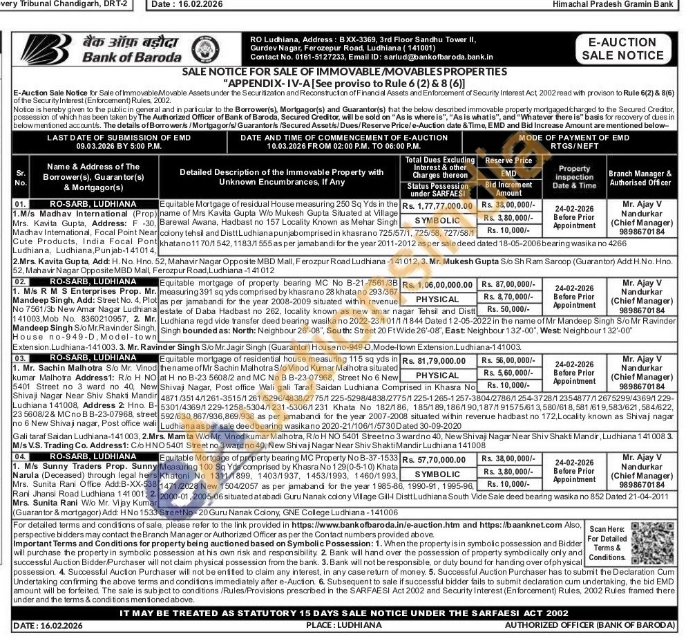 Equitable Mortgage of re sidual House measuring 250 Sq Yds in the name of Mrs Kavita Gupta W/o Mukesh Gupta Situated at Village Barewal Awana, Hadbast no 157 Locality Known as Mehar Singh colony tehsil and Distt Ludhiana punjab comprised in khasrano 725/57/1, 725/58, 727/58/1 -khatano 1170/1 542, 1183/1 555 as per jamabandi for the year 2011-2012 as per sale deed dated 18-05-2006 bearing wasika no 4266