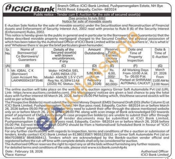 Reg No. KL.59W1144 (2020) RC Status- Yes Make-HONDA SIEL CARS INDIA LTD Model- AMAZE 1.5 V CVT