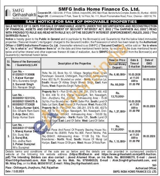 All That Piece And Parcel Of Property Bearing House No-33, Missal No-358/99, Patta No.-809, Panch Mokha, Pali Raj-306401. Admeasuring Area: 111.89 Sq. Yds. Four Boundaries: North: Road, South: House Of Mangi Lal Harijan, East: House Of Shyam, West House Of Nola Ram