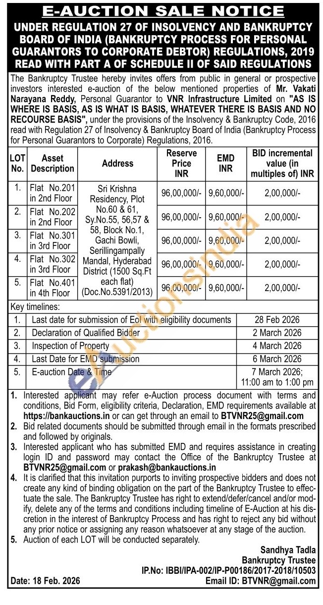 Flat No.301 in 3rd Floor Sri Krishna Residency, Plot No.60 & 61, Sy.No.55, 56,57 & 58, Block No.1, Gachi Bowli, Serillingampally Mandal, Hyderabad District (1500 Sq.Ft each flat) (Doc.No.5391/2013)