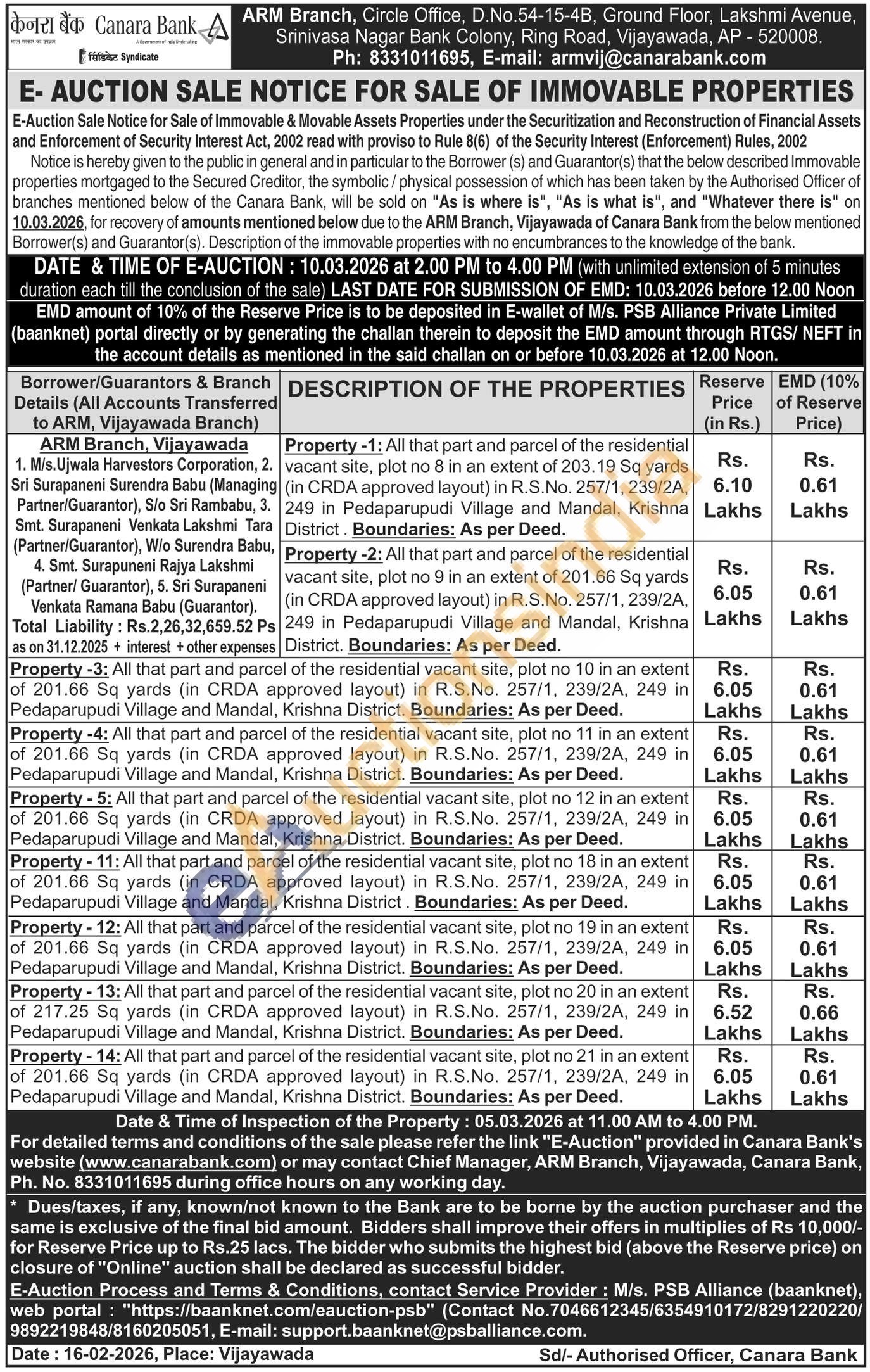 Contact No ; Ph: 8331011695, E-mail: armvij@canarabank.com