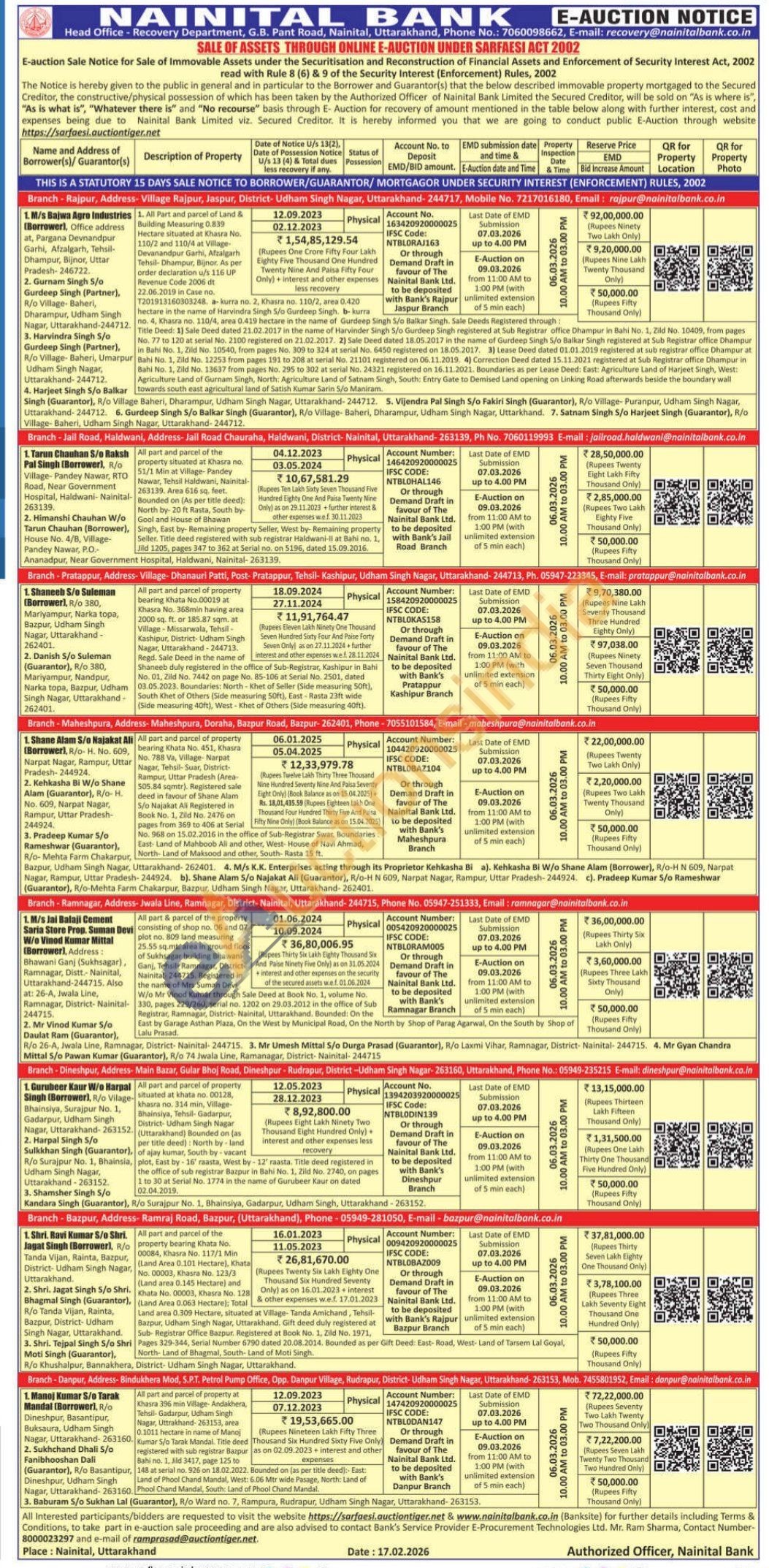 8) All part and parcel of property at Khasra 396 min Village-Andakhera, Tehsil-Gadarpur, Udham Singh Nagar, Uttrakhand-263153, area 0.1011 hectare in name of Manoj Kumar S/o Tarak Mandal. Title deed registered with sub registrar Bazpur Bahi no. 1, Jild 3417, page 125 to 148 at serial no. 926 on 18.02.2022 Bounded on (as per title deed):- East Land of Phool Chand Mandal, West 6.06 Mtr wide Pasage, North: Land of Phool Chand Mandal, South:Land of Chand Mandal