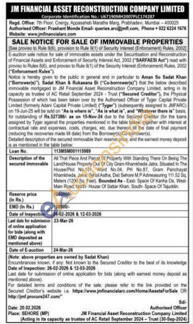 All That Plece And Parcel Of Property With Standing There On Being The Land House Property Out Of City Gram Khamkheda Jatra, Situated in The House/Plot No.151. Ward No.04, PH No.87, Gram Panchayat Khamkheda, Jatra, Tehsil Astha, Dist Sehore M.P Admeasuring 111.52 Sq. Meters (1200 Sq. Feet) Bounded As East-Space Of Kanha Da, West Main Road, North House Of Sattar Khan, South- Space Of Tajuddin.