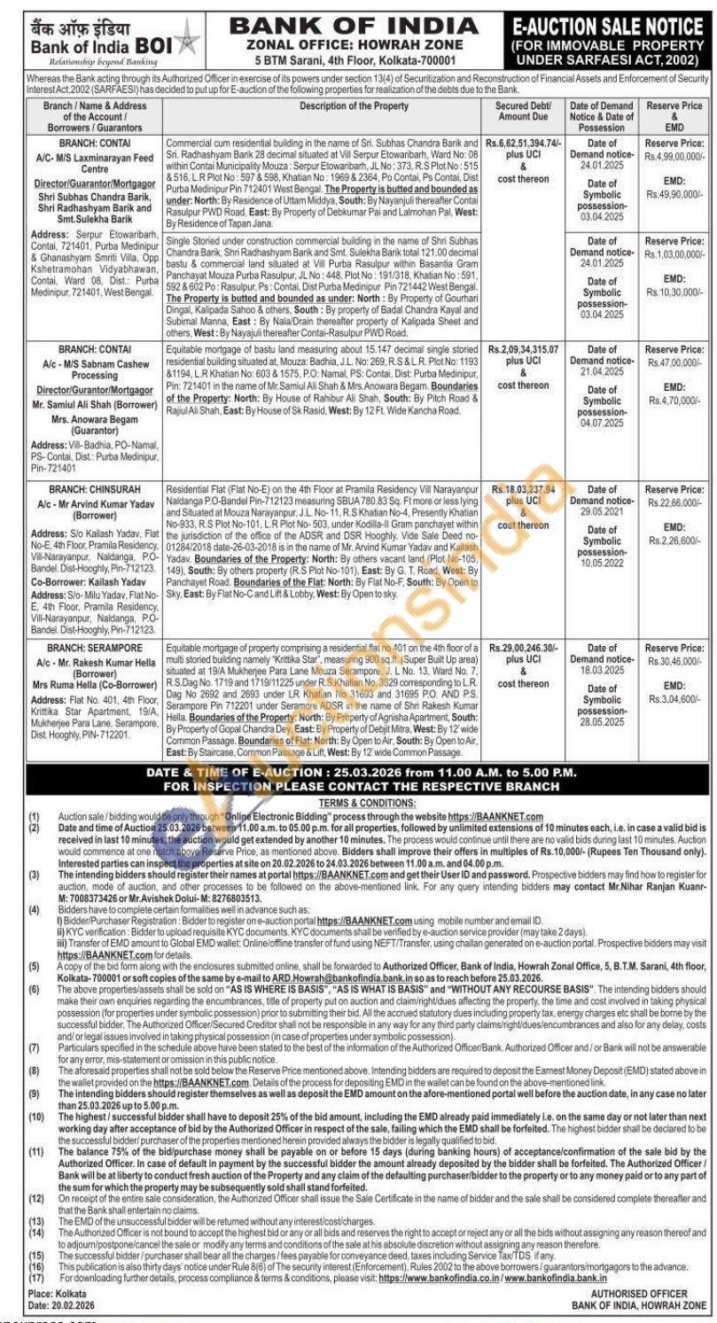 Single Storied under construction commercial building in the name of Shri Subhas Chandra Barik, Shri Radhashyam Barik and Smt. Sulekha Barik total 121.00 decimal bastu & commercial land situated at Vill Purba Rasulpur within Basantia Gram Panchayat Mouza Purba Rasulpur, JL No: 448, Plot No: 191/318, Khatian No: 591. 592 & 602 Po: Rasulpur, Ps: Contal, Dist Purba Medinipur Pin 721442 West Bengal. The Property is butted and bounded as under: North: By Property of Gourhari Dingal, Kalipada Sahoo & others, South: By property of Badal Chandra Kayal and Subimal Manna, East: By Nala/Drain thereafter property of Kalipada Sheet and others, West: By Nayajuli thereafter Contai-Rasulpur PWD Road.