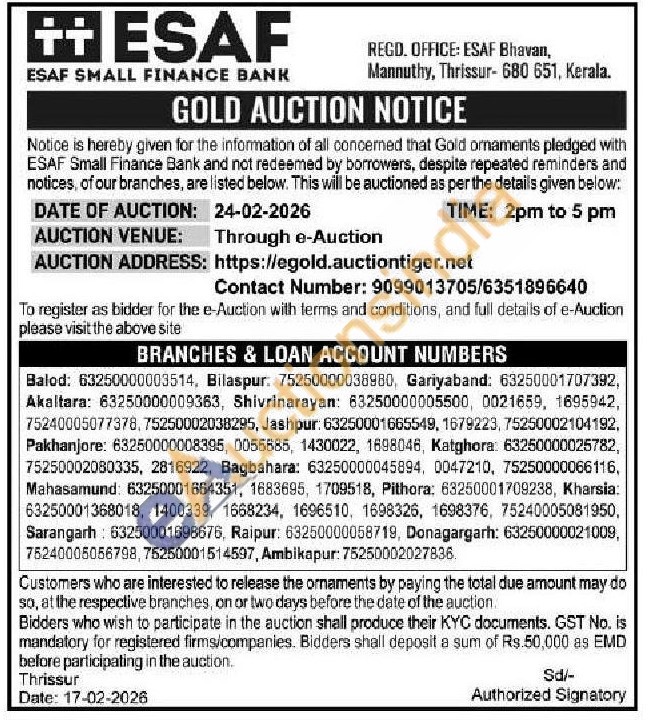 ESAF SMALL FINANCE BANK Gold Auctions Auction in Bilaspur