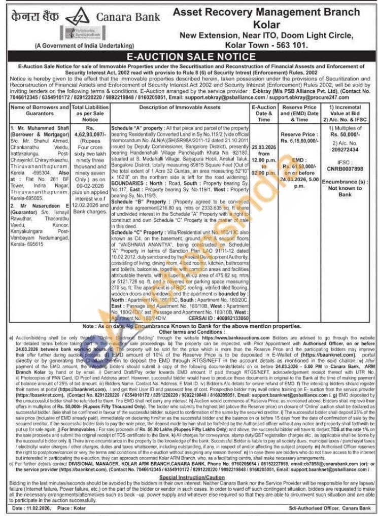Schedule "A" property: All that piece and parcel of the property. bearing Residentially Converted Land in Sy No. 119/2 (vide official memorandum No. ALN(A)(SH)SR98A/2011-12 dated 21.10.2011 issued by Deputy Commissioner, Bangalore District), presently bearing Handenahalli Village Panchayath Khata No. 92/180 situated at 5. Medahalli Village, Sarjapura Hobli, Anekal Taluk. Bangalore District, totally measuring 69815 Square Feet (Out of the total extent of 1 Acre 32 Guntas, an area measuring 52'10" x 162'8" on the northern side is left for the road widening). BOUNDARIES: North Road, South Property bearing Sy No 117, East: Property bearing Sy No. 119/1, West: Property be bearing Sy. No. 119/3.Schedule "B" Property (Property agreed to be conveyed under this agreement)216.80 sq. mtrs or 2333.635 sq ft share of undivided interest in the Schedule "A" Property with a right to construct and own Schedule "C" Property is the matter of sale in this deed. Schedule "C" Property: Villa/Residential unit No. 180/19C also known as C4, on the basement, ground, first & second floors of "VAISHNAVI ANANTYA", being constructed on Schedule "A" Property in terms of Sanction Plan LAO 91/11-12 dated 10.02.2012, duly sanctioned by the Anekal Development Authority consisting of living, dining room, 4 bed rooms, kitchen, bathrooms and toilet/'s, balconies, together with common areas and facilities attributable thereto, with a super built-up area of 475.82 sq. mtrs or 5121,726 sq. ft. and a covered car parking space measuring 270 sq. ft. The apartment is of RCC roofing, vitrified tiled flooring, wooden doors and windows, and the apartment is bounded by: North: Apartment No. 180/18C, South: Apartment No. 180/200 East: Passage and Apartment No. 180/108, West: Apartment No. 180/24DIV ast Passage and Apartment No. 180/10B. West Apartment No. 180/24DIV