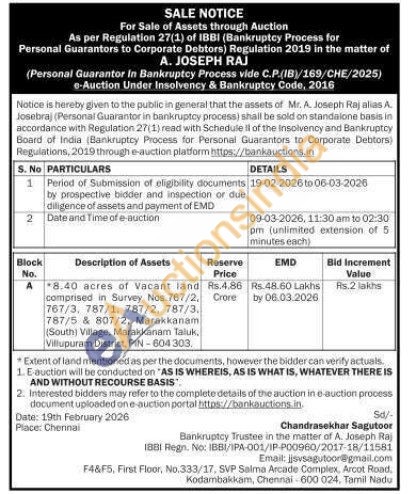8.40 acres of Vacant land comprised in Survey Nos. 767/2, 767/3, 787/1, 787/2. 787/3, 787/5 & 807/2, Marakkanam (South) Village, Marakkanam Taluk, Villupuram District, PIN-604303