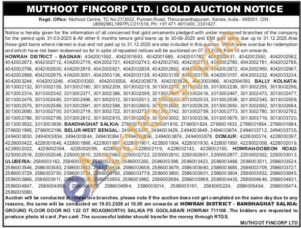 Muthoot Fincorp Ltd Gold Auctions Auction in Howrah