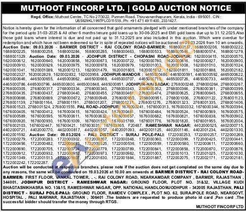 Muthoot Fincorp Ltd Gold Auctions Auction in Barmer