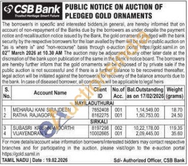 CSB Bank Gold Auctions Auction in Mayiladuthurai