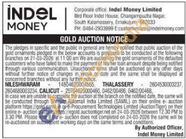 Indel money ltd Gold Auctions Auction in Kasaragod