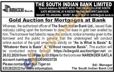 South Indian Bank Gold Auctions Auction in Ranga Reddy