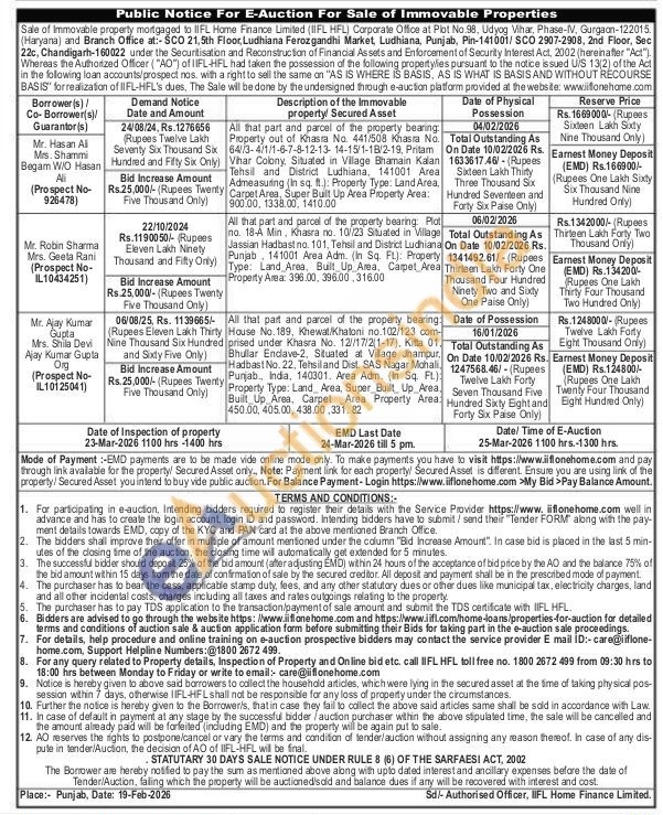 All that part and parcel of the property bearing Property out of Khasra No. 441/508 Khasra No. 64/3-4/1/1-6-7-8-12-13-14-15/1-18/2-19, Pritam Vihar Colony, Situated in Village Bhamain Kalan Tehsil and District Ludhiana, 141001 Area Admeasuring (in sq. ft.): Property Type: Land Area. Carpet Area, Super Built Up Area Property Area: 900.00, 1338.00, 1410.00