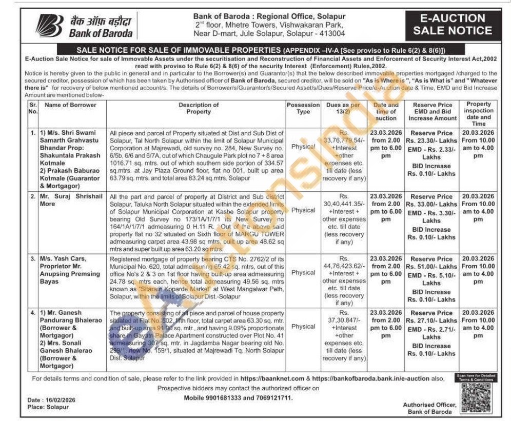 1) All piece and parcel of Property situated at Dist and Sub Dist of Solapur, Tal North Solapur within the limit of Solapur Municipal Corporation at Majrewadi, old survey no. 284, New Survey no. 6/5b, 6/6 and 6/7A, out of which Chaugule Park plot no 7+8 area 1016.71 sq. mtrs. out of which southern side portion of 334.57 sq.mtrs. at Jay Plaza Ground floor, flat no 001, built up area 63.79 sq. mtrs, and total area 83.24 sq.mtrs. Solapur