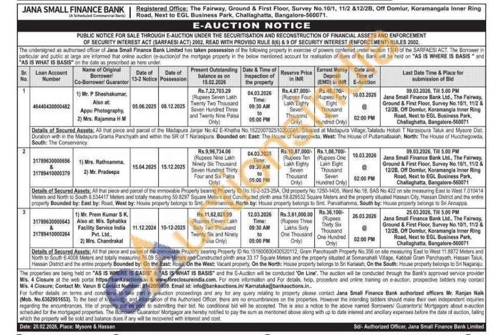 All that piece and parcel of the immovable Property bearing Property ID No. 151600600400520112, Gram Panchayath Property No.356 on site measuring East to West 11.8872 Meters and North to South 6.4008 Meters and totally measuring 76.09 Square Meters and Constructed plinth area 33. 17 Square Meters and the property situated at Somanahalli Village, Kabbali Gram Panchayath, Hassan Taluk Hassan District and the entire property Bounded by: On the East: Road, On the West: Vacant property, On the North: House property belongs to Sri Kariaiah, On the South: House property belongs to Sri Nagaraju