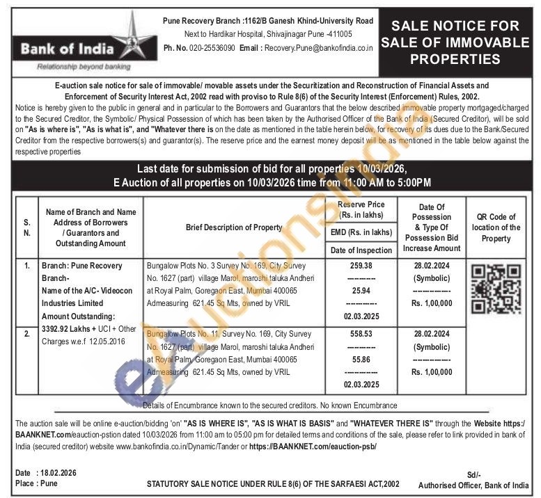 Bungalow Plots No. 11, Survey No. 169, City Survey No. 1627 (part) village Marol, maroshi taluka Andheri at Royal Palm, Goregaon East, Mumbai 400065 Admeasuring 621.45 Sq Mts, owned by VRIL